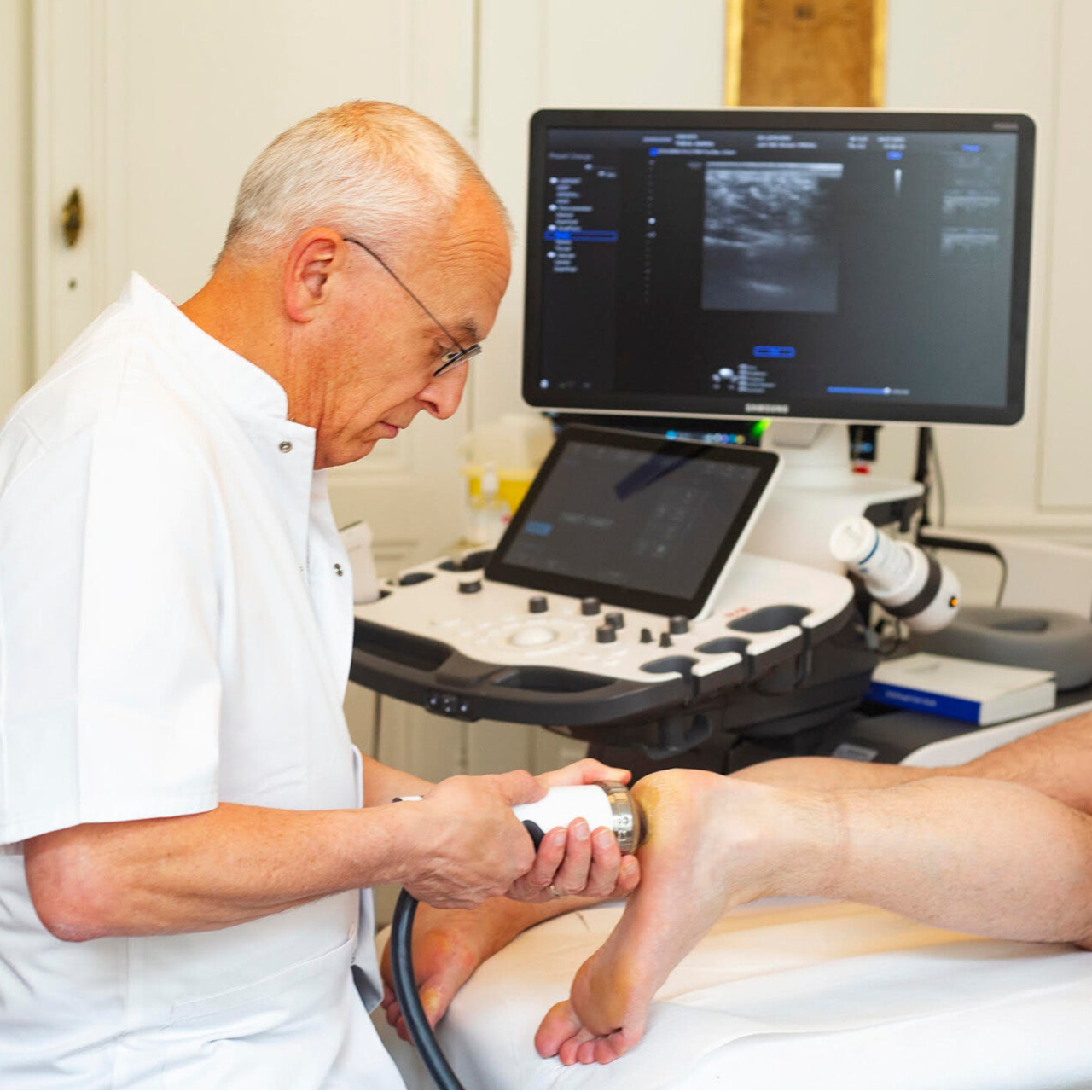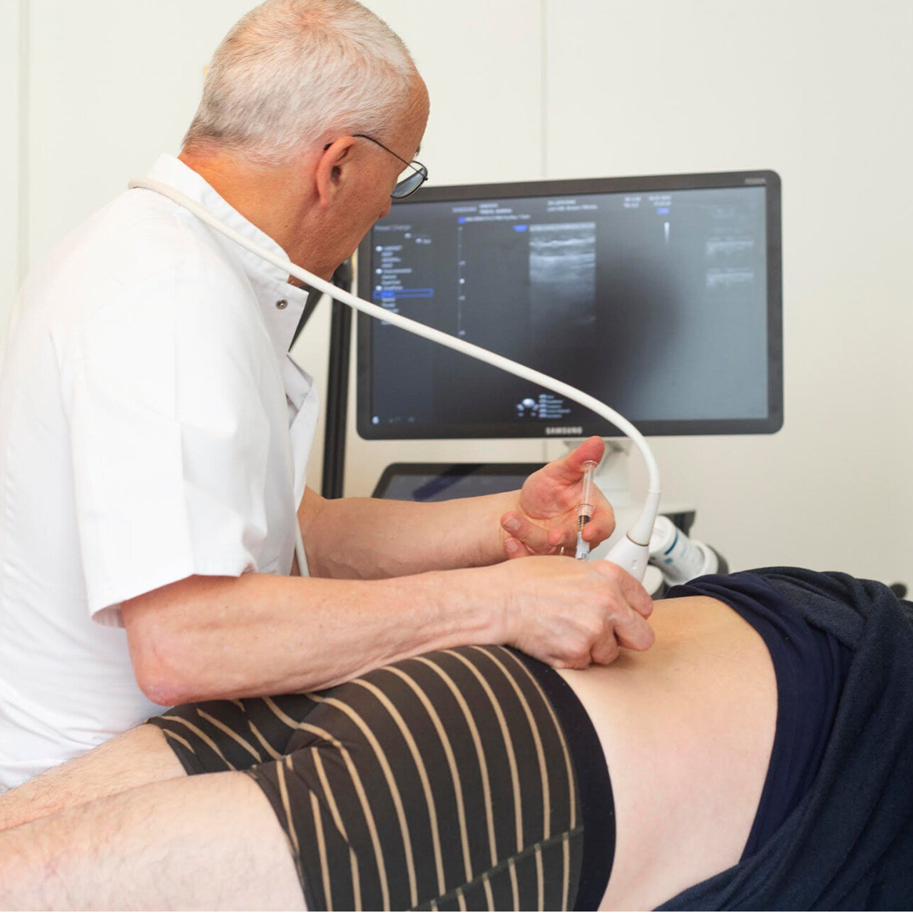 - Infiltratie in pezen, gewrichten, slijmbeurzen (al of niet onder echografische begeleiding)